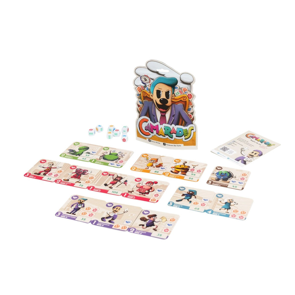 Par rapport aux autres jeux de dés, Camarades se distingue par son aspect vachard et jouissif. Il combine l’intensité du Risk avec une dimension euphorisante du Yam’s ou de Pickomino. Ce jeu est parfait pour celles et ceux à la recherche d’un jeu plein de coups d’éclat à jouer entre amis à l’apéro ou en famille, entre enfants ou entre adultes, que vous soyez aussi bien 2 que 5 camarades de jeux autour de la table (basse).