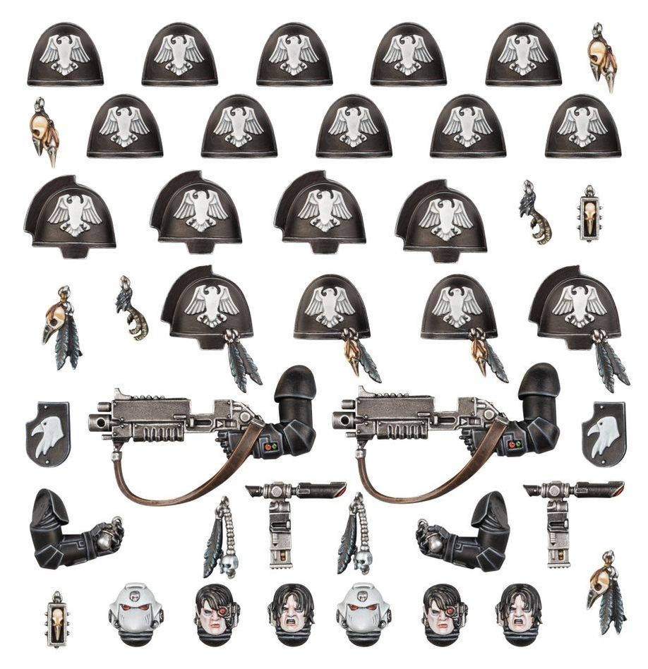 – 5 épaulières Raven Guard pour armure énergétique Mk X (prévues pour des Hellblasters/Intercessors)